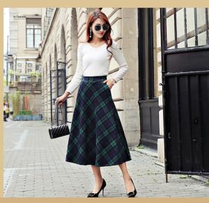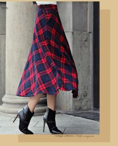チェックスカート フレアスカート ミモレ丈 ロング丈 ハイウェスト ウール