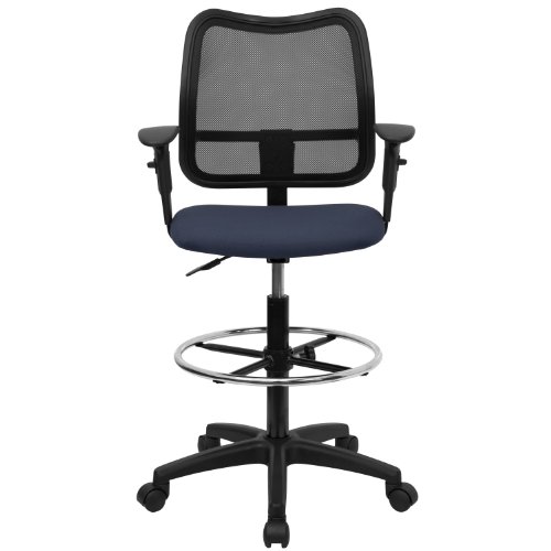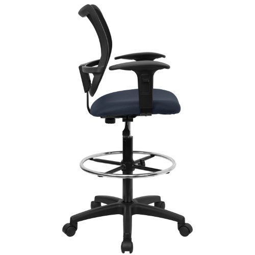 -. Title : MFO Mid-Back Mesh Drafting Stool with Navy Blue Fabric Seat and Arms