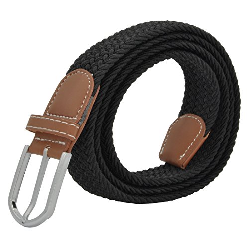 Men Elastic Fabric Woven Stretch Belt Braided Webbed Waistband with Faux Leather *These belts come in a variety of colors and patterns to help you get the perfect match with all your different wardrobe needs.