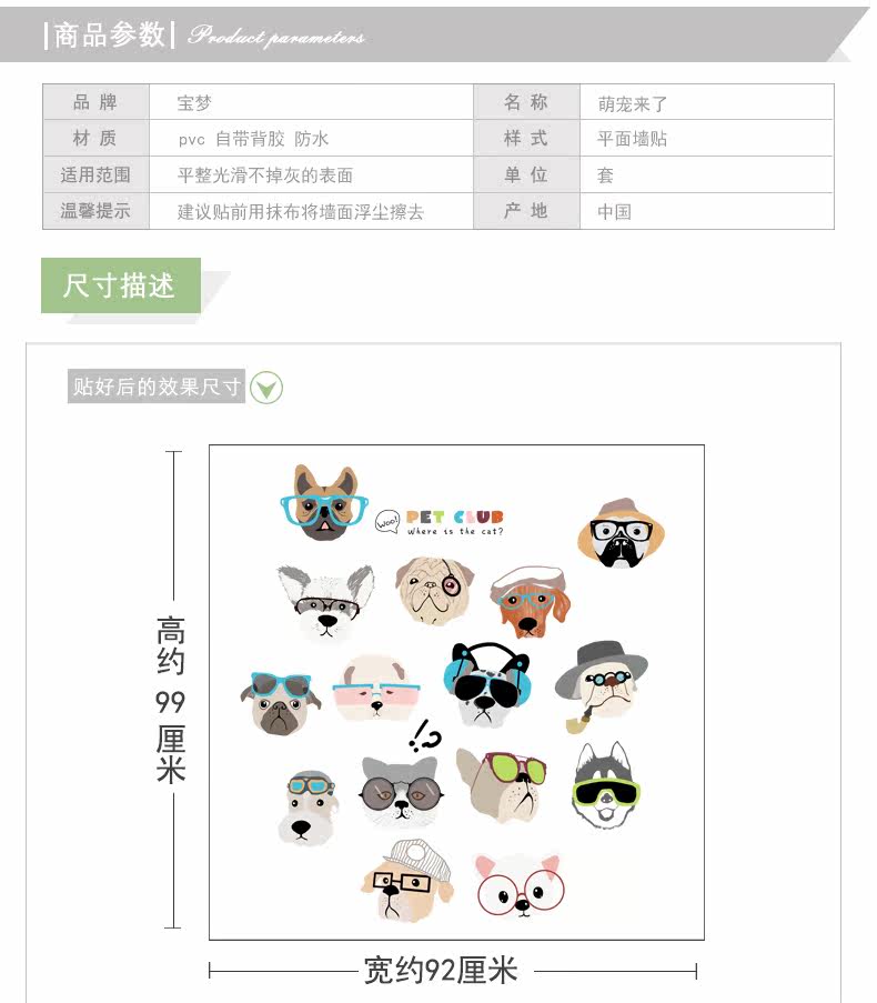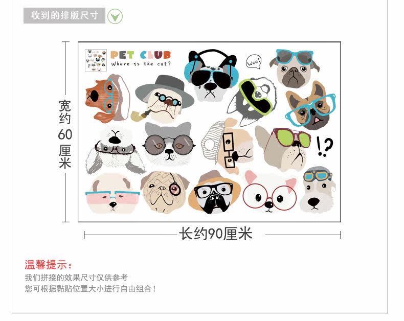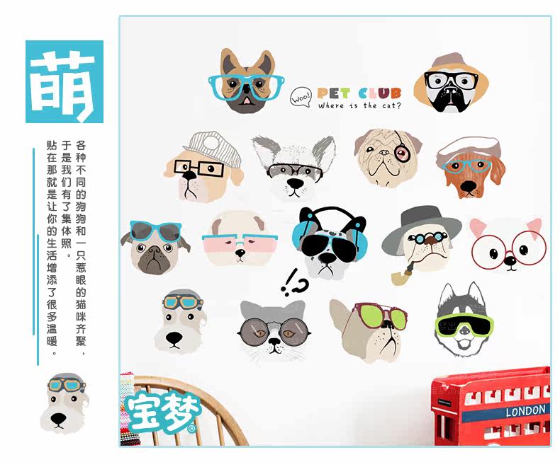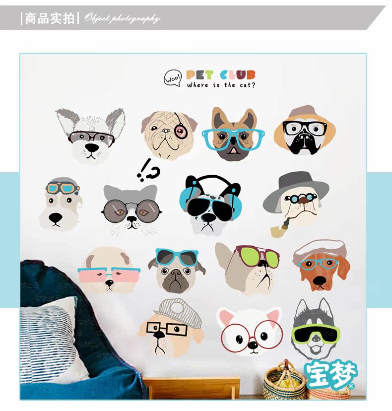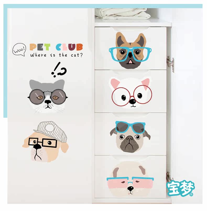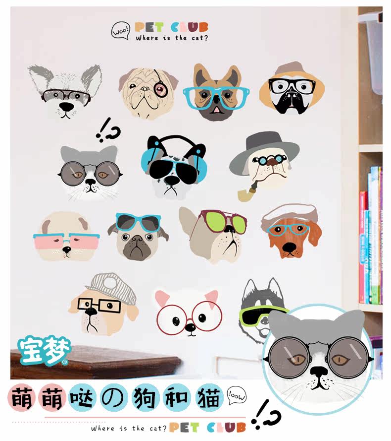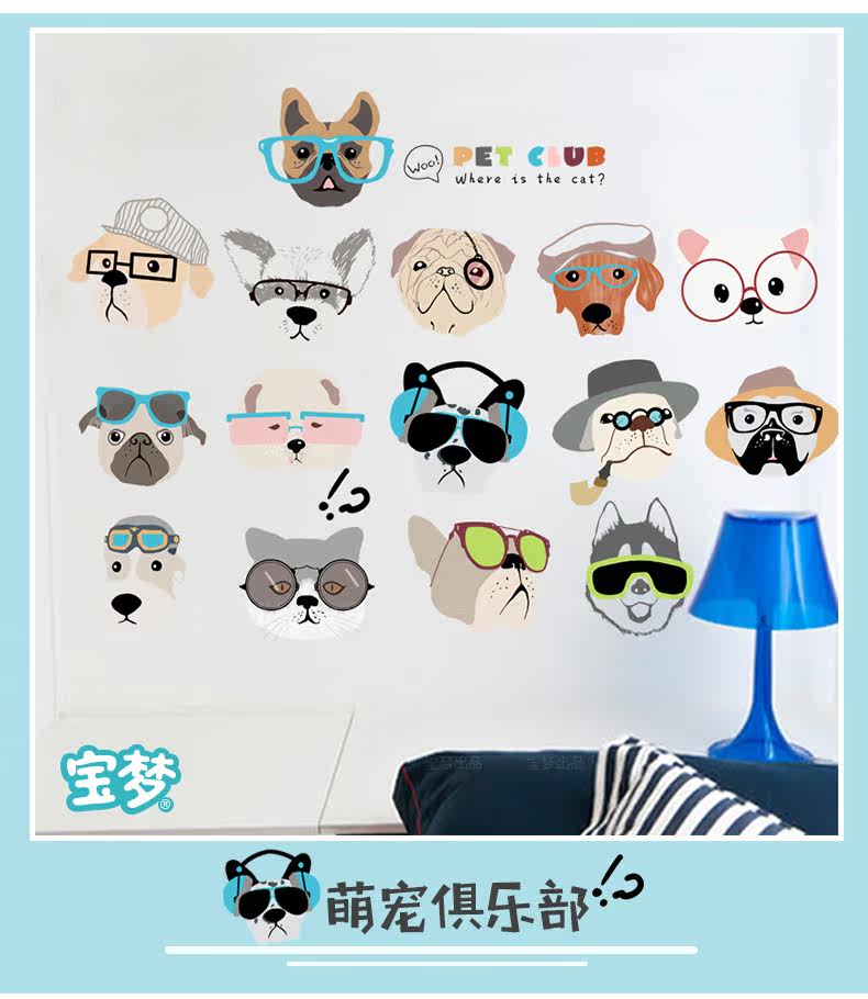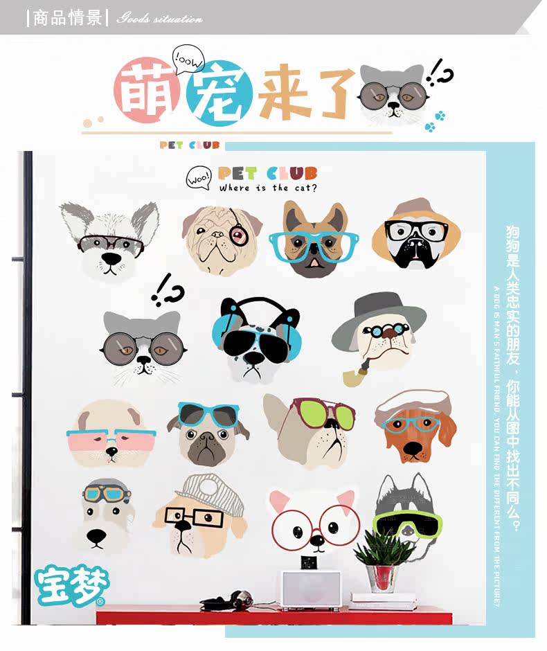 卡通儿童房可爱狗狗装饰随心贴画创意客厅走廊玄关趣味动物墙贴纸