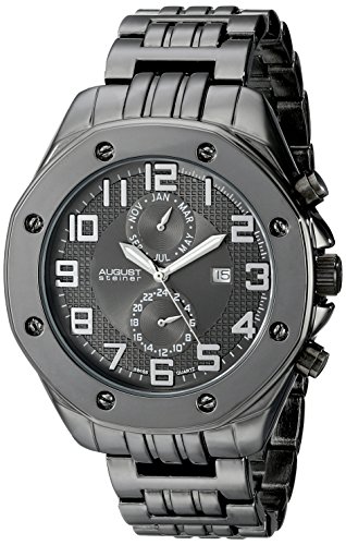 -. Binding : Watch -. Brand : August Steiner -. Color : Black/Grey/Gun/Silver/White -. Department : mens -. EAN : 0848572044820 -. Feature : Multifunction features include month and GMT (24 hour) sub dials; date window at the 3 o'clock position / Decorative screws on the bezel / Swiss-quartz Movement / Case Diameter: 48mm / Water Resistant To 33 Feet -. IsAdultProduct : 0 -. Label : August Steiner -. Manufacturer : August Steiner -. Model : AS8140BK -. MPN : AS8140BK -. PackageQuantity : 1 -. PartNumber : AS8140BK -. ProductGroup : Watch -. ProductTypeName : WATCH -. Publisher : August Steiner -. Studio : August Steiner -. Title : August Steiner Men's AS8140BK Analog Display Swiss Quartz Black Watch -. UPC : 848572044820
