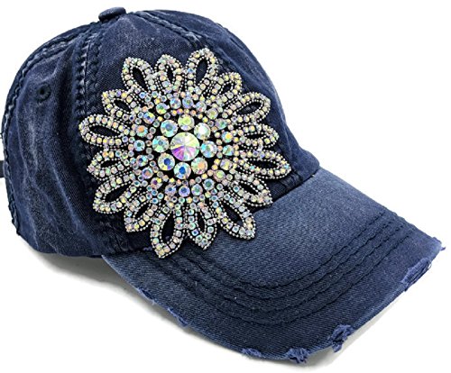 -. Binding : Apparel -. Brand : Olive & Pique -. Color : Grey Brown -. Department : womens -. Feature : Fully adjustable with buckle style back / High quality irridescent stones / Slightly distressed bill -. ProductGroup : Apparel -. ProductTypeName : HAT -. Size : One Size -. Title : Olive & Pique Women's Large AB Iridescent Crystal Flower Distressed Baseball Cap