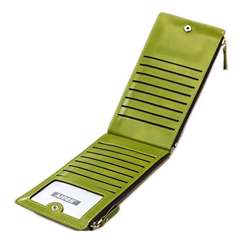 DEEZOMO Multi-function Credit ID Cards Case Long Wallet with Zipper - Green