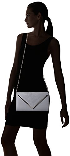 Product DescriptionPu clutch with v flap, metal bar detail on the flap and chain crossbody strap.0
