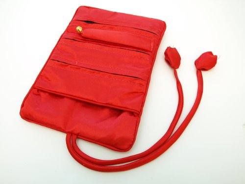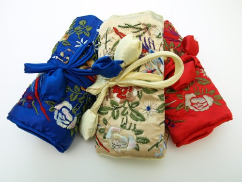Store your jewelry in our Silk Embroidered Brocade Jewelry Travel Organizer Rolls. These rolls are an ideal way to safely take your jewelry with you while you are traveling. The rolls contain three zippered pockets and a bigger pocket for more storage if necessary. A strap is also provided for rings. Available in a variety of colors. Material: Silk.