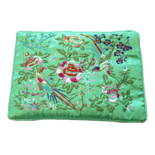 WRAPABLES SILK EMBROIDERED BROCADE JEWELRY TRAVEL ORGANIZER ROLLS, GREEN