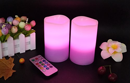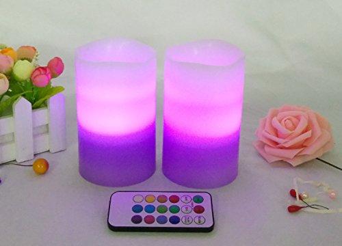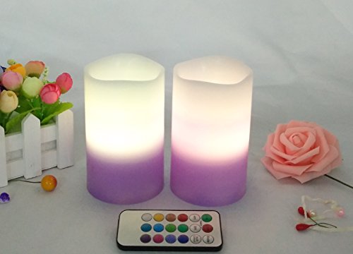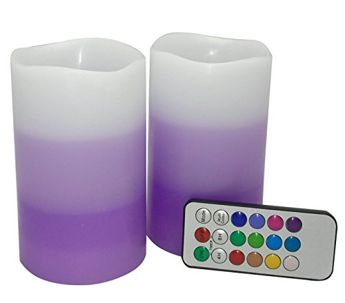 Adoria Led Pillar candles with Timer,real wax led lights with tri-layers purple colored with lavendar scented-Tall 5 inches,2 of set-By Adoria