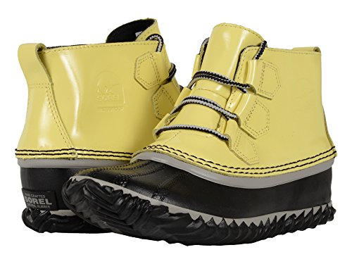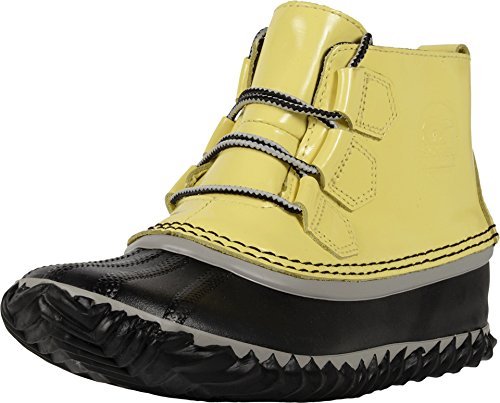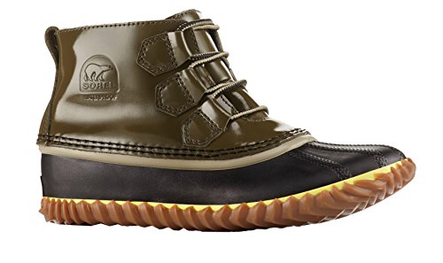 Binding : Apparel Product Description FEATURES of the Sorel Women's Out N About Rain Boot Upper: Waterproof patent leather upper Seam-sealed waterproof construction Canvas lining Footbed: Removable molded EVA footbed, canvas topcover Midsole: Vulcanized rubber Outsole: Handcrafted waterproof vulcanized rubber shell with herringbone outsole Vulcanized rubber compound for wet traction 0