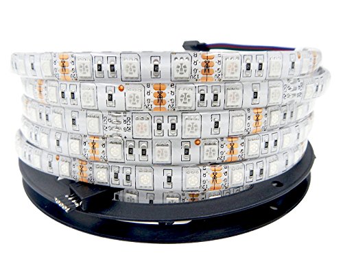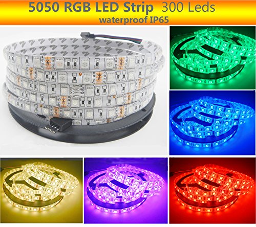 Visdoll SMD 5050 RGB Led Strip Lights DC 12V, 16.4Ft 300Leds IP65 Waterproof Flexible Tape lights Color Changing Rope Lights (White PCB)