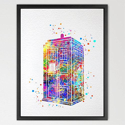 Dignovel Studios 13X19 Tardis Dr Who Inspired Watercolor Art Print Wall Art Hanging Home Decor Nursery Kids Art N359