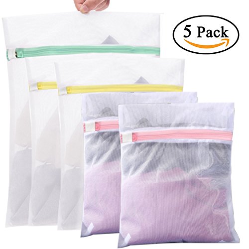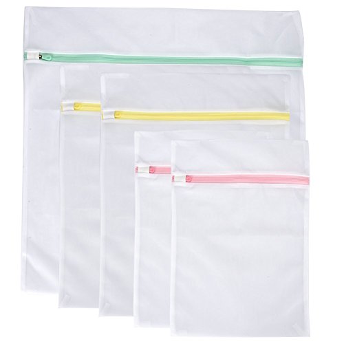 PAPRMA Set of 5 Delicates Mesh Laundry Bags with Premium Zipper for Clothing, Blouse, Hosiery, Stocking, Underwear, Bra and Lingerie, Travel Laundry Bag (1 large, 2 medium & 2 small)