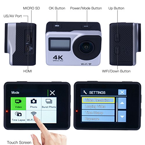 Emcent 액션 카메라 2인치 터치 스크린 웨어 러브 루카메라 카메라 악세사리 WIFI 4K 25fps 수중 촬영 2.4G리모콘 수중에서도 리모콘 가능 자전거나 오토바이로 설치