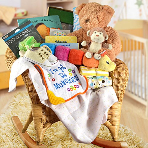 -. Feature : Made of the finest plush materials and fleece; we guarantee both the new baby and the new parents will love it! / Great for Baby's First Birthday, or great as a baby shower gift idea! / Include a FREE gift message at checkout for your family, friends or loved ones! / When this wicker chair arrives, filled with clothing, bath essentials, gifts and toys, baby's first thought will probably be ''WOW''!