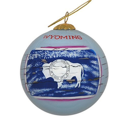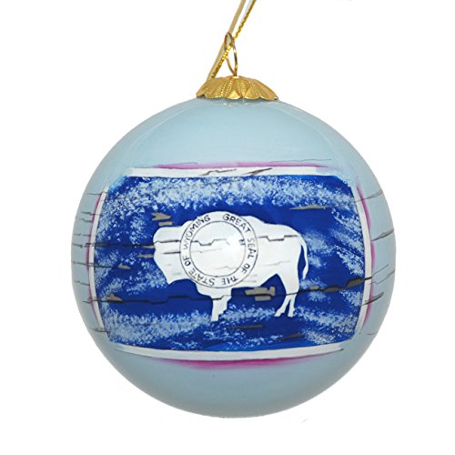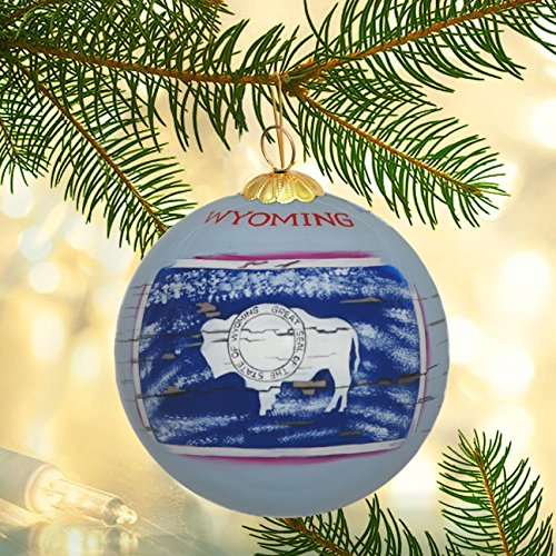 Hand Painted Glass Christmas Ornament - Distressed Wyoming State Flag