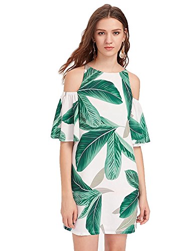 Open Shoulder, Ruffle Sleeve, Round Neck