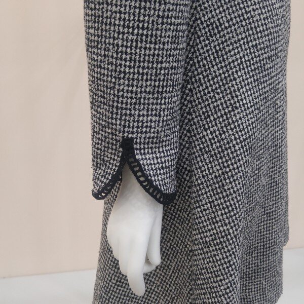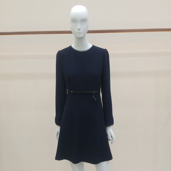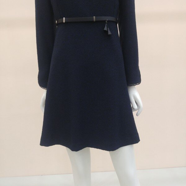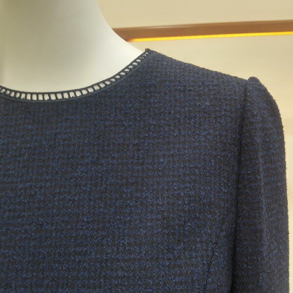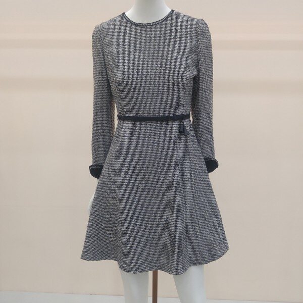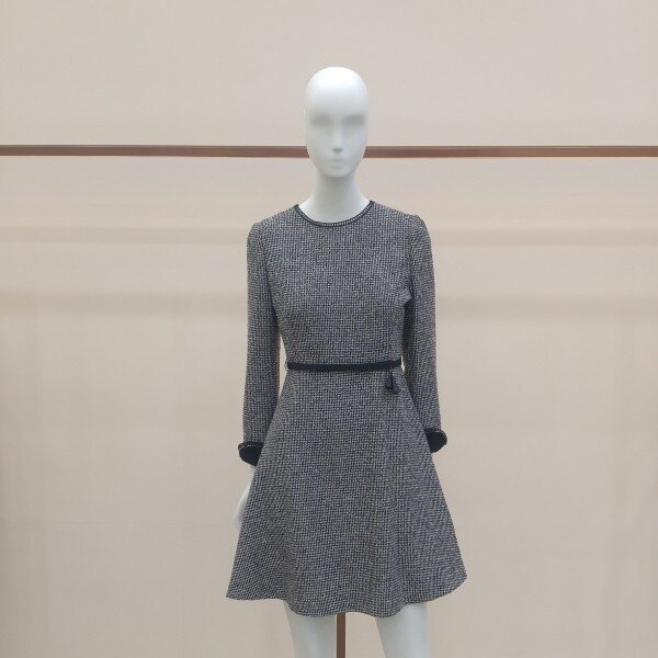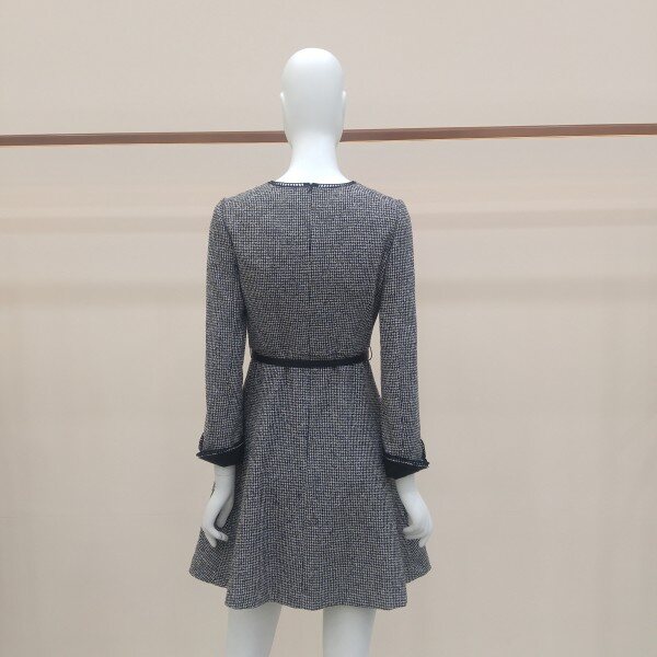 두껍지 않은 트위드소재로, ?선의 장식과 소맷단 턴업배색이 고급스러운 플레어 원피스입니다.