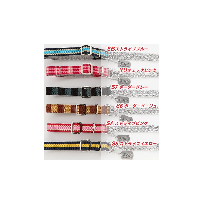 도그 컬러 【초소형 견용목걸이】메탈 B 도그 캐주얼 하프 체인 컬러 SS사이즈 무늬:S7 보더 그레이