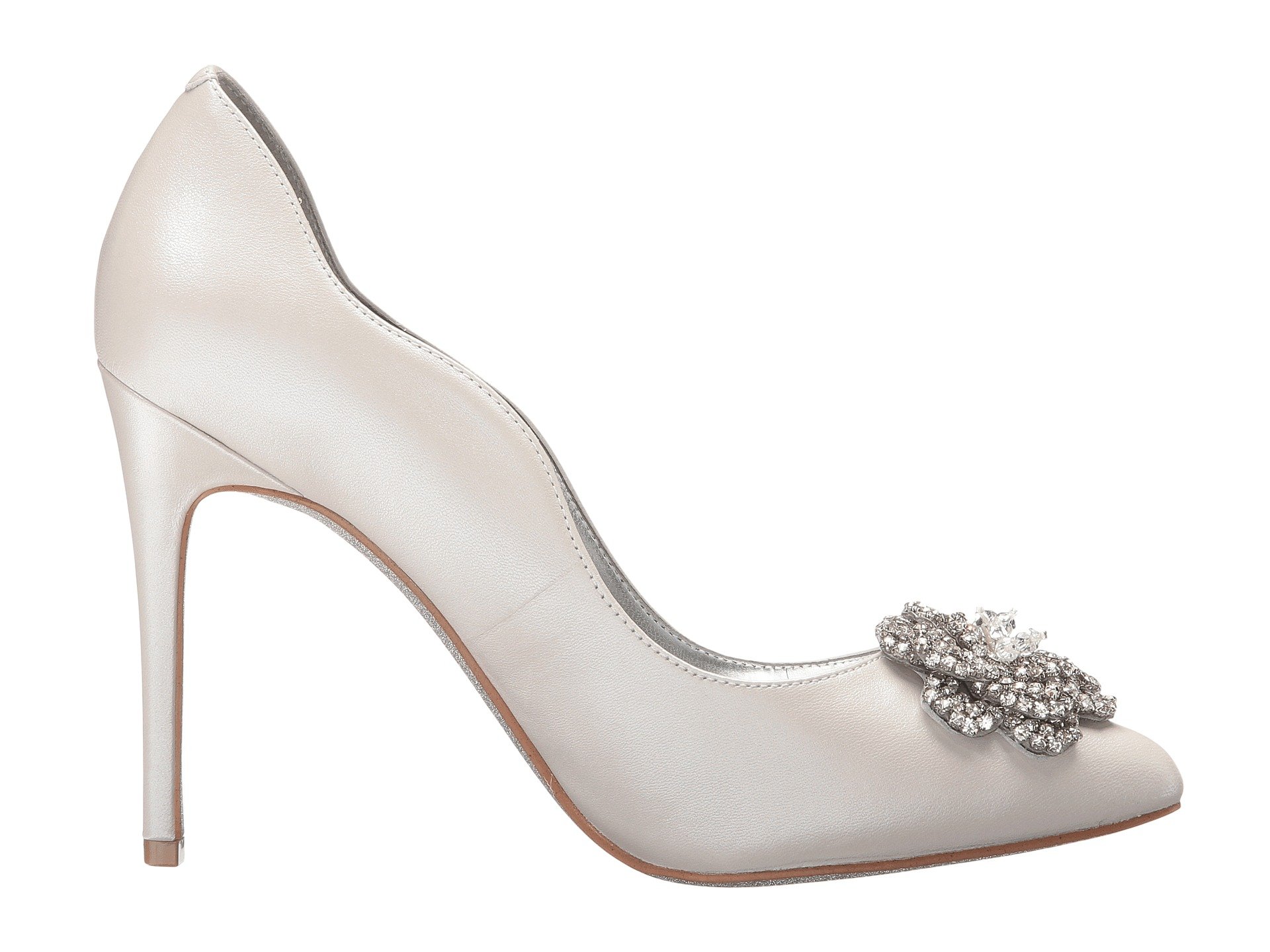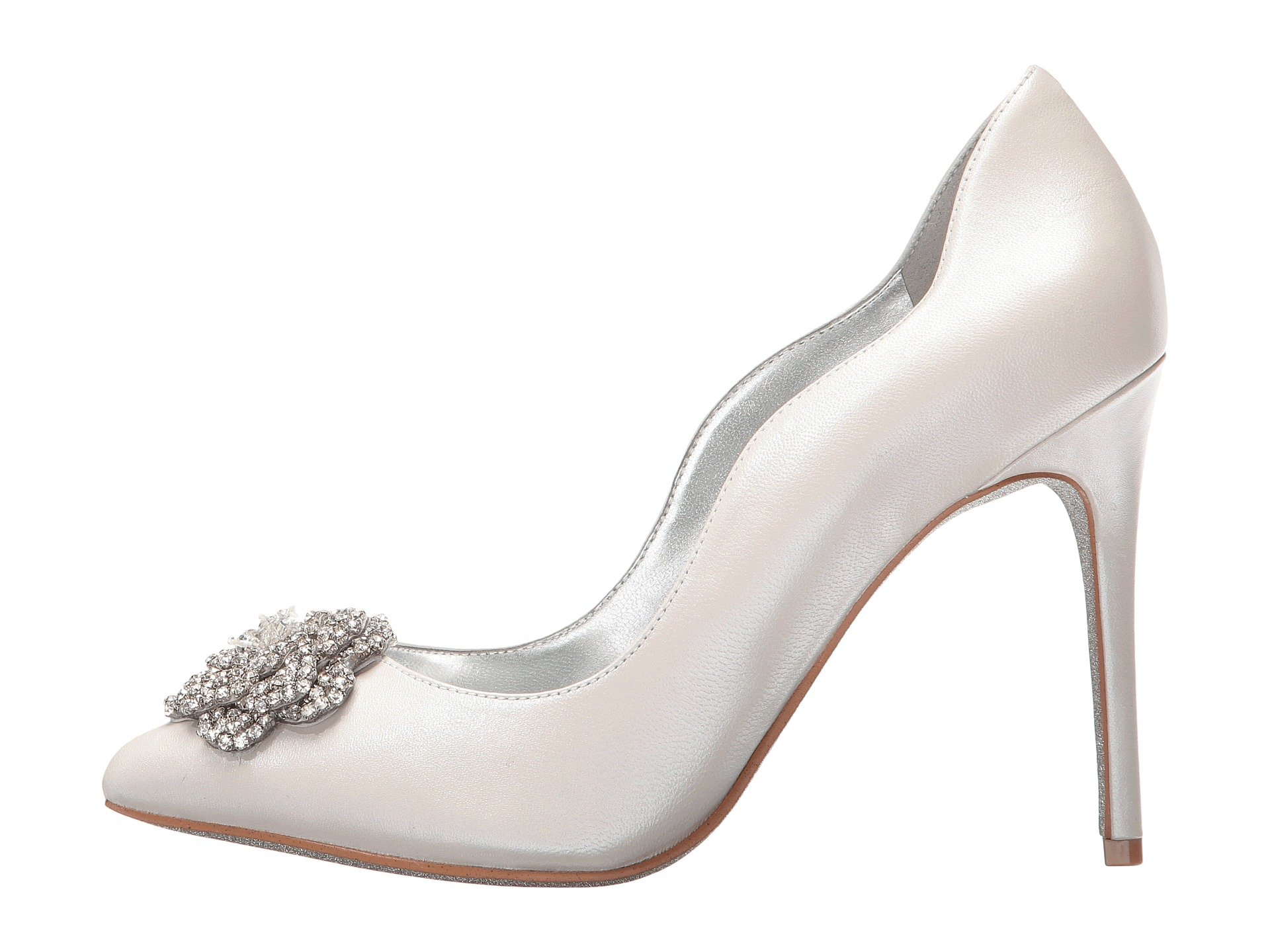 | Product Information SKU: #8849570Make an entrance and turn heads at any soiree when you flaunt the Nine West? Elizza pump.Textile upper with scalloped edges.Slip-on design.Pointed toe.Antique-inspired brooch at toe.Man-made lining.Lightly padded footbed.Wrapped heel.Man-made sole.Imported.Product measurements were taken using size 8, width M. Please note that measurements may vary by size.Weight of footwear is based on a single item, not a pair.Measurements: Heel Height: 4 in Weight: 8 oz |