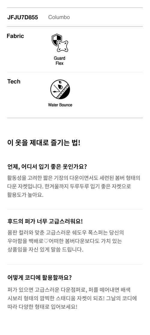 고급스러운 쉐도우 폭스퍼로 우아하며 보온성이 우수한 덕 다운 기능성 아이템입니다.