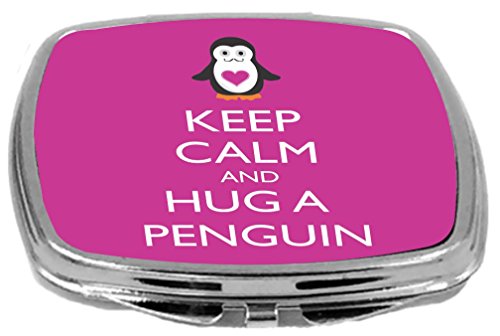 Rikki Knight Compact Mirror, Keep Calm and Hug a Penguin Rose Pink