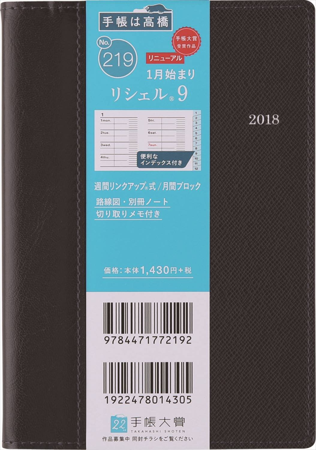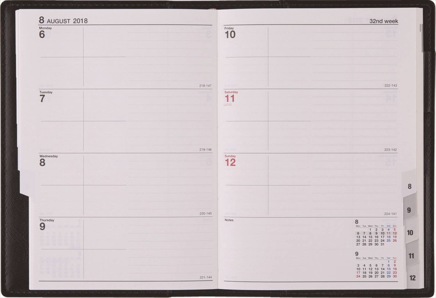 Previously I was using the A4 type, but I wanted something more compact, I am using this notebook since 2016. The feel of the cover is also good, and the appearance also feels a little luxury. I especially like the golden accents in the middle of the surface. Of course the contents are also easy to use. Because there is a weekly shortly after indexed monthly, page turning is easy.