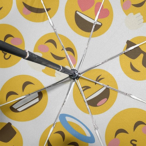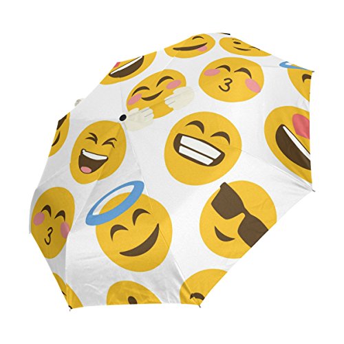-. Title : WOZO Black Yellow Cute Emoji Smiley 3 Folds Auto Open Close Umbrella