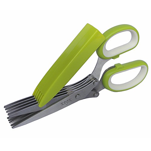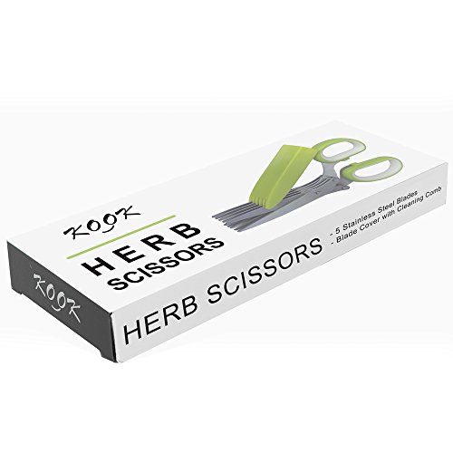 KOOK HERB SCISSORS - PREMIUM & MULTI PURPOSE KITCHEN SHEARS WITH 5 BLADES STAINLESS STEEL - BLADE COVER WITH CLEANING COMB, ALSO GREAT FOR ART AND CRAFT