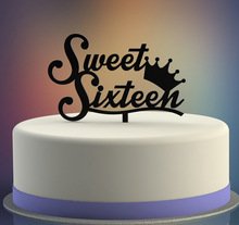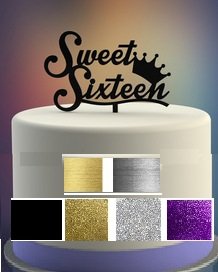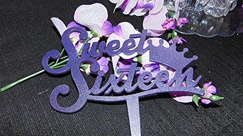 Sweet Sixteen 16 Happy Birthday Anniversary Acrylic Cake Topper Acrylic Cake Topper (Glittery Purple)