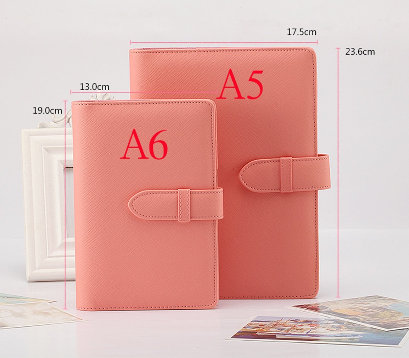 Size: A5: 23.6 cm x 17.5 cm Size: A 6: 19 cm x 13 cm