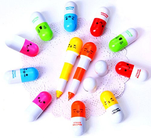 Bokit 60pcs/lot Vitamin Pen, Ballpoint Pen, Vitamin Pill, Novelty Pen, Size12x2.4cm, Gift Pen,multicolor