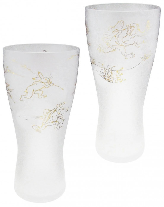 日本古来の文化や意匠を現代の技術・手法でグラスウエアに写しました。まるで氷晶の如くキラキラと煌めくグラス表面に金彩紋様が踊るモダンで涼しげな風合いの趣ある逸品です。 |