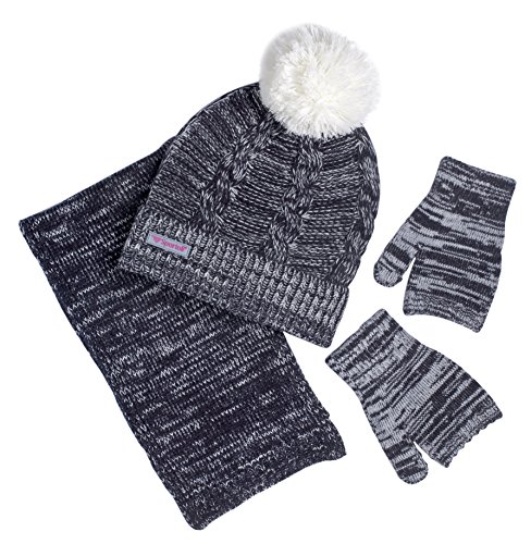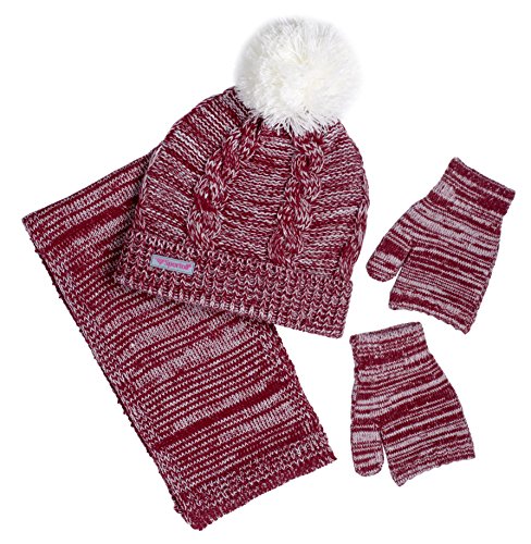 About this Product: An ultimate blend of warmth, toastiness and style. This toasty winter accessory set for men by Sportoli features a pull-on pom beanie hat, matching scarf and matching secure gloves. Made in a stylish cable knit construction of a fine acrylic material with some added spandex in the gloves for a better stretch and fit, this set is machine washable. Available in a wide variety of nice contrast color combos to best meet your taste and winter gear.