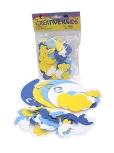 Studio : American Science Surplus Publisher : American Science Surplus Binding : Toy Product Description Foam Clouds And Moons And plenty of 'em. Our each is a sack of (50) assorted crescent moons (complete with the man in them) and happy little clouds, all made of dense foam about the thickness of a quarter. They run from 1-1/8" to 4" long in light and dark blue, yellow and white. Great for kids' crafts and decorating bedrooms. Bonus: the clouds would make perfect dialogue balloons for scrapbooks. 0
