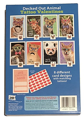 (Mello Smello)/Stationery Party Supplies/Stationery/DIRECT FROM USA/Decked Out Animal Tattoo Valentines 32 Valentines 32 Tattoos Classroom Exchange