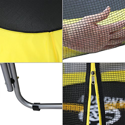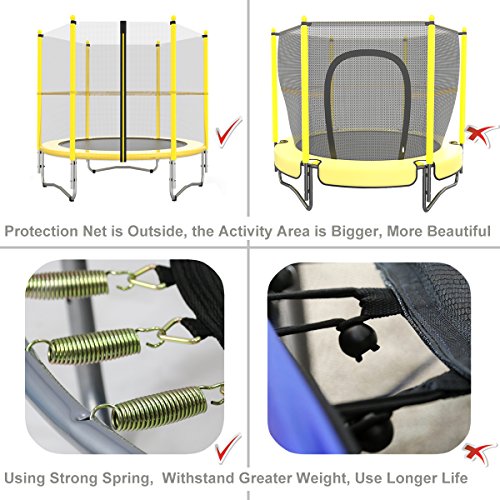 Bring fun together with health and fitness to your home and family with this Complete High Quality Langxun 5FT Kids Trampoline and Enclosure Set! This trampoline is both durable and padded to provide hours of safe, active fun for your little bouncers. The frame is made of high-quality steel and durable, blow-molded plastic to ensure safety. Round zippered entrance enclosure net is supported by padded poles for added safety and 100% assurance of a secure fun jumping experience for your kids and their friends!