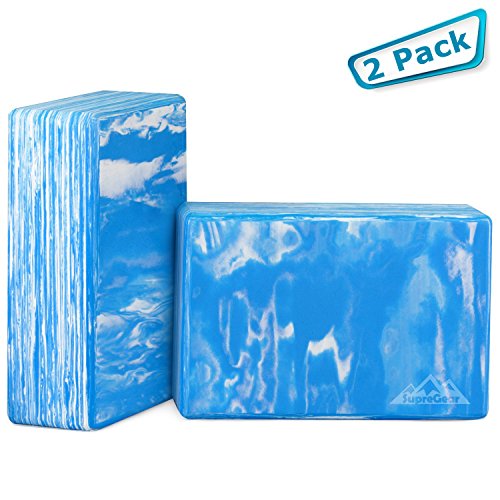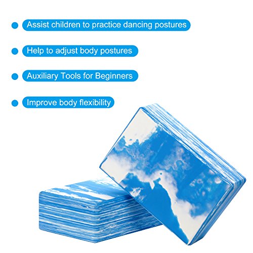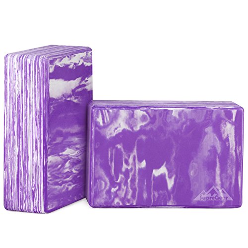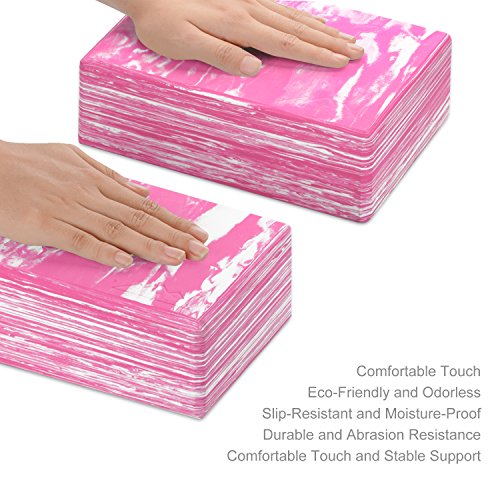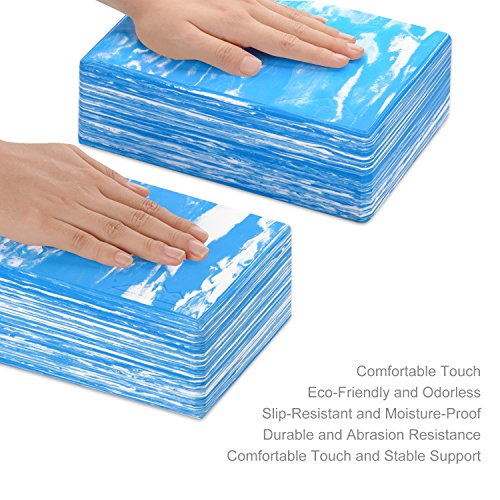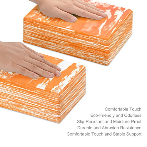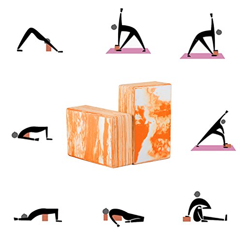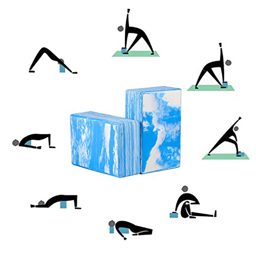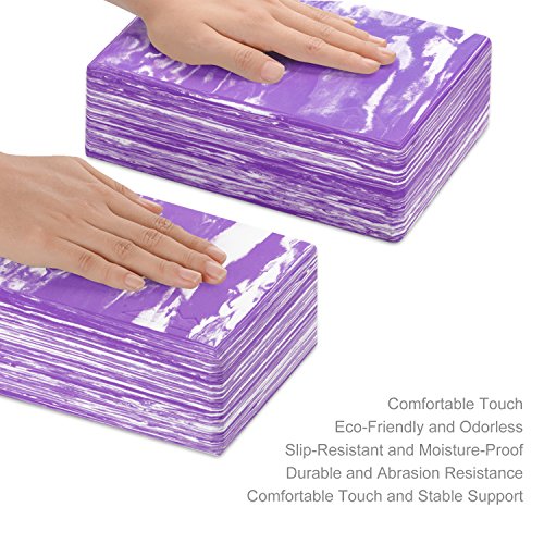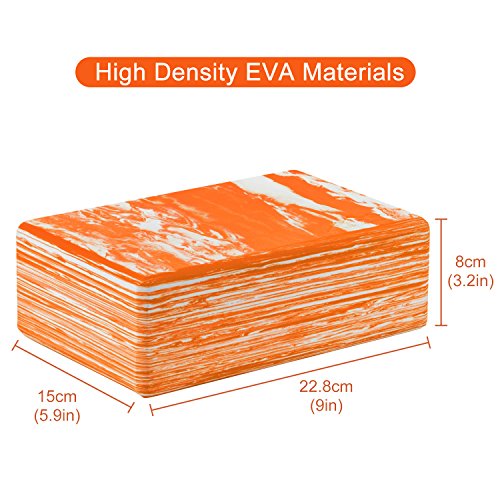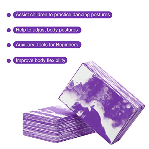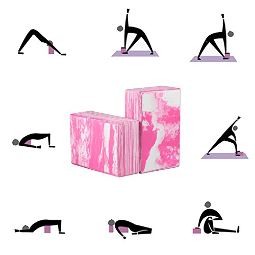 Package includes 2 yoga blocks in 9 x 6 x 3 inch (L x W x H). Available in four colors with unique print: purple, blue, pink, orange.