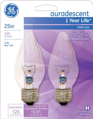 GE Auradescent 75340 25-Watt, 120-Lumen Flame Tip Light Bulb with Medium Base, 8-Pack