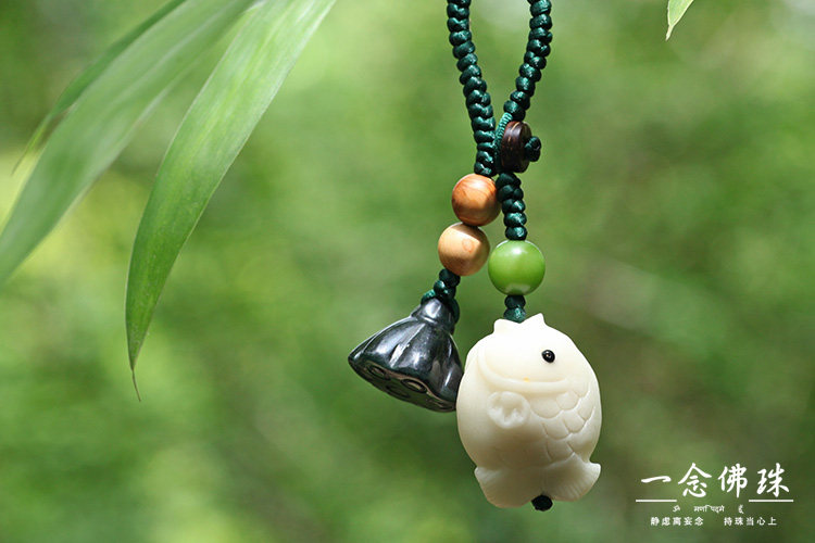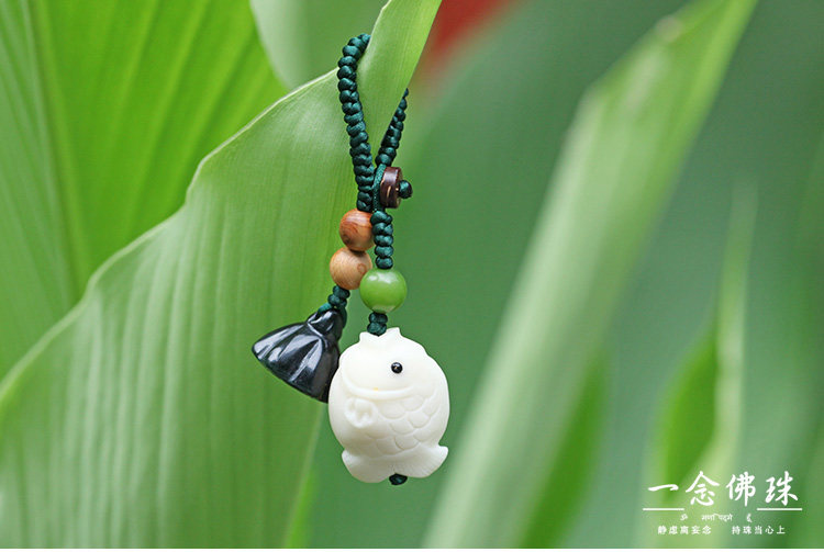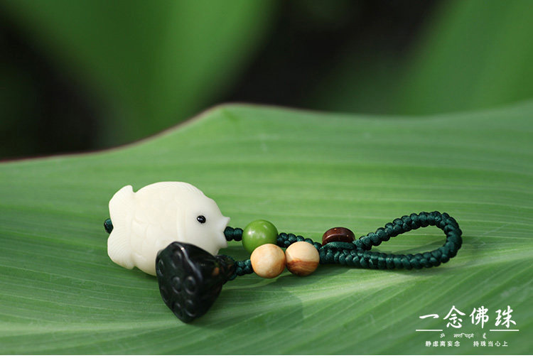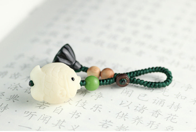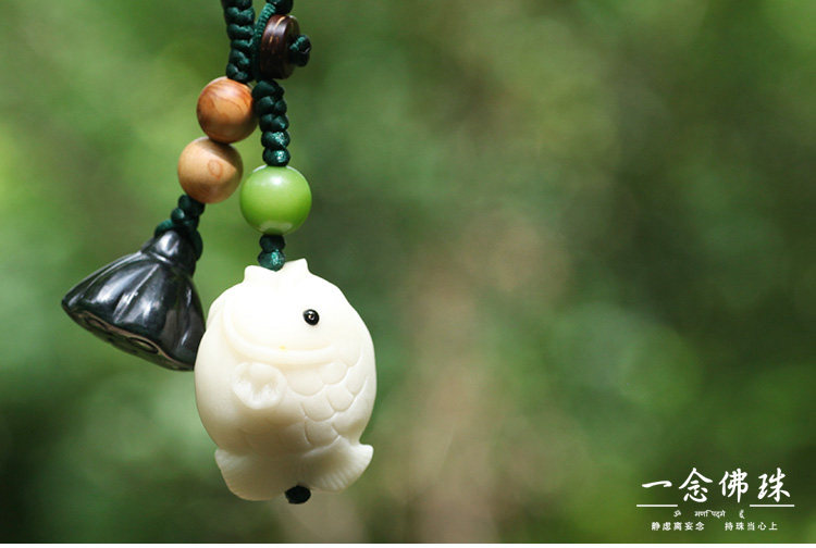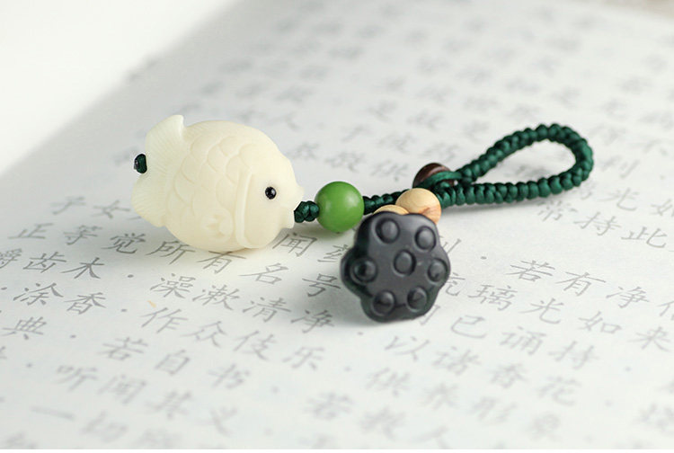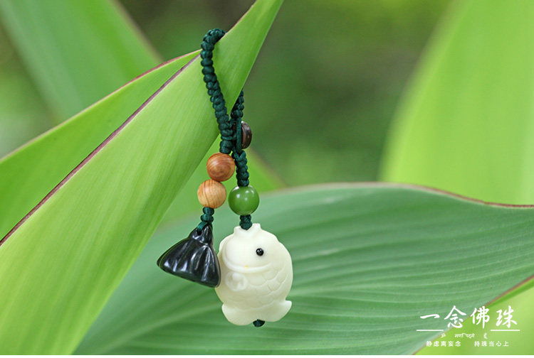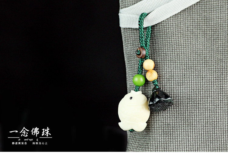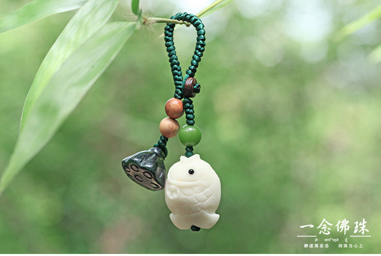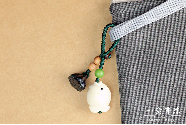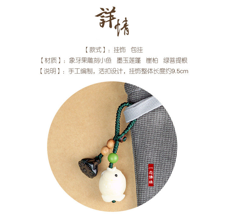 天然象牙果小鱼挂件 墨绿玉莲蓬文艺