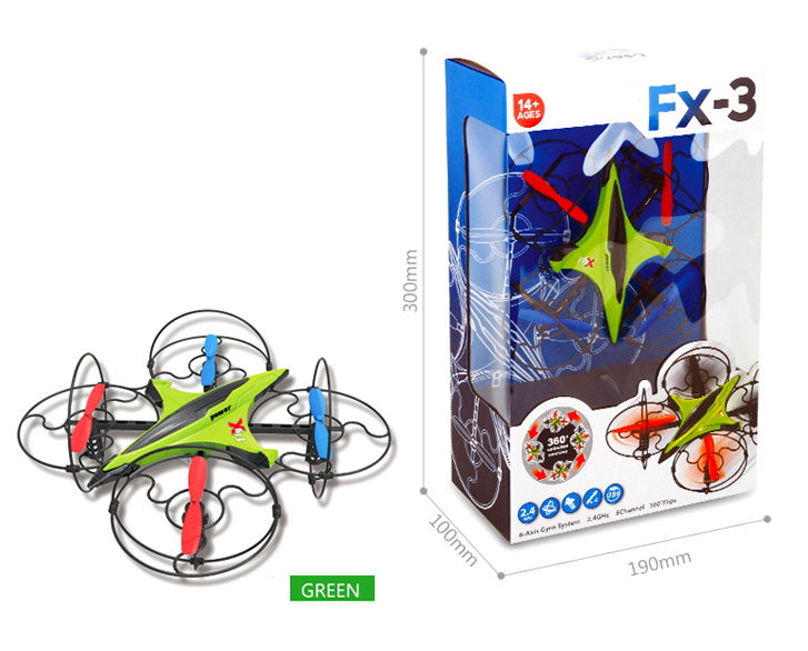 The FX-3 has a capacity of 370mAh and can fly for about 6 minutes.