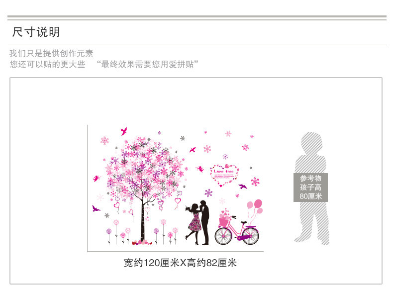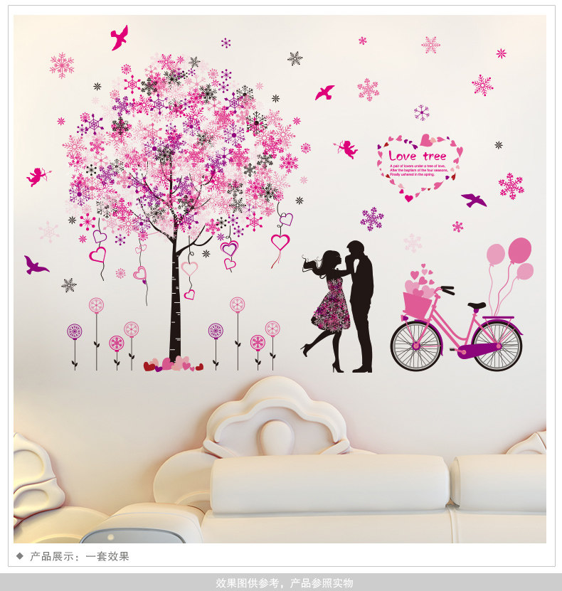 墙贴纸贴画自粘壁纸卧室温馨浪漫床头婚房布置墙壁装饰情侣雪花树