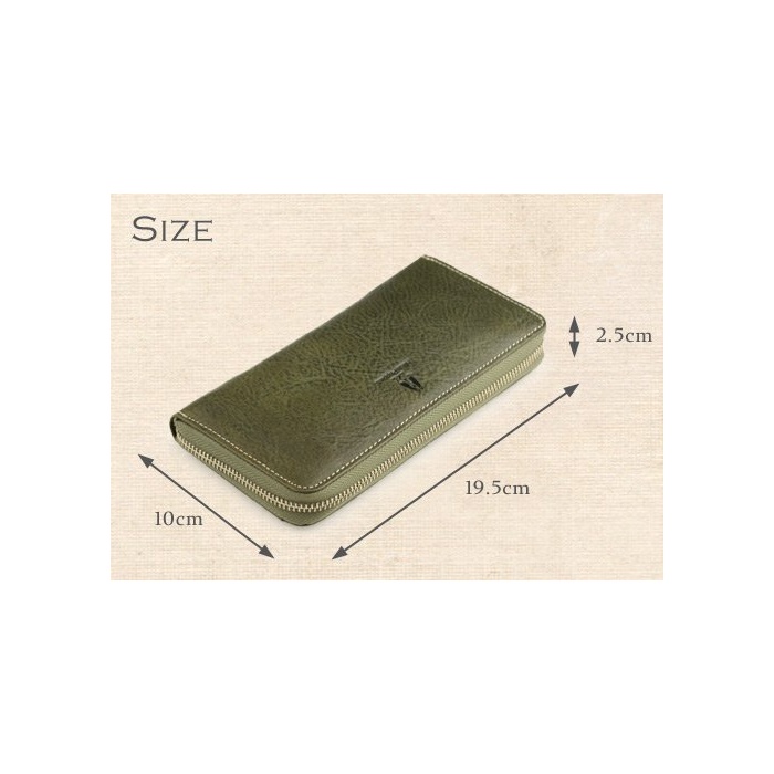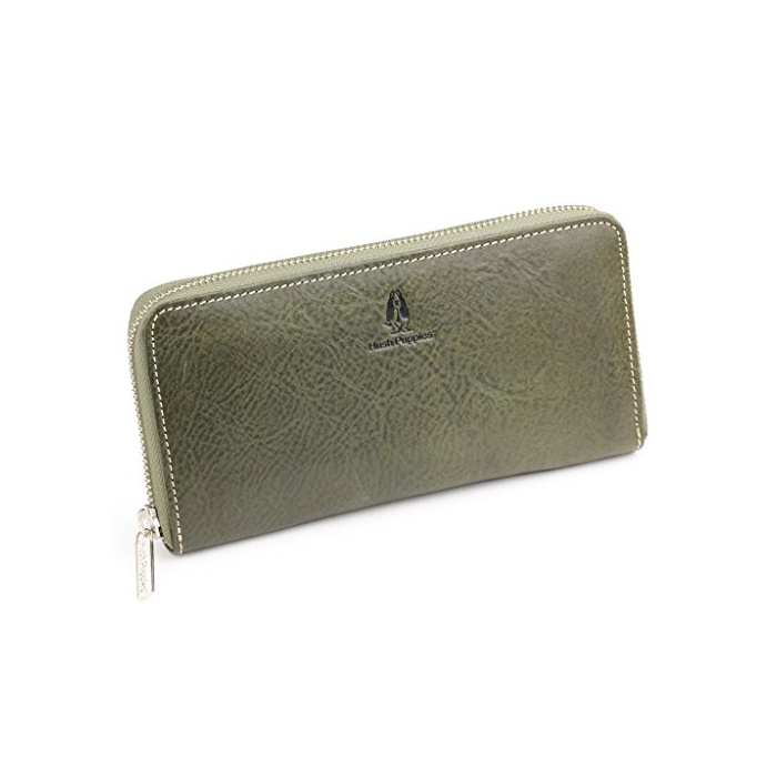 (해쉬 파 pea)Hush Puppies 이탈리안 레더 소가죽 라운드 패스너 장지갑 그린