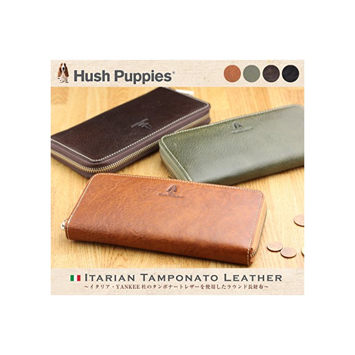 원본상품명: (ハッシュパピ)Hush Puppies イタリアンレザ 牛革 ラウンドファスナ長財布 グリン