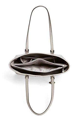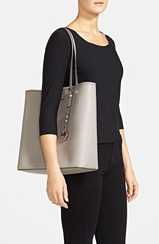 Lavish Saffiano leather textures an elegant, versatile tote detailed with a dangling logo tag for a touch of gleam.