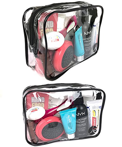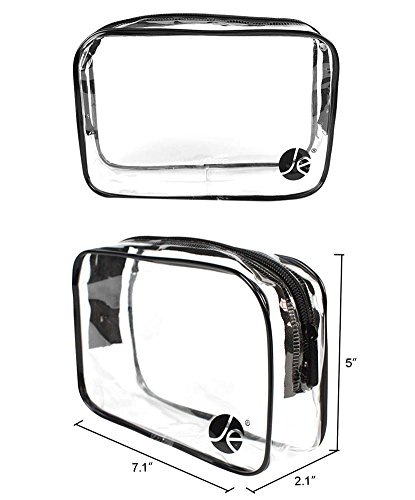 - SECURE & SAFE- CARRY ON SIZE: (L x W x H) 7.1" x 2.1" x 5" inches. Clear cosmetic bag set is compliant with TSA 3-1-1 rules & regulations. Speed through security at airports, concert venues, & NFL games. Fully transparent bags lets security easily see what is in each bag which means no more holds up for you saving your time at the security line
