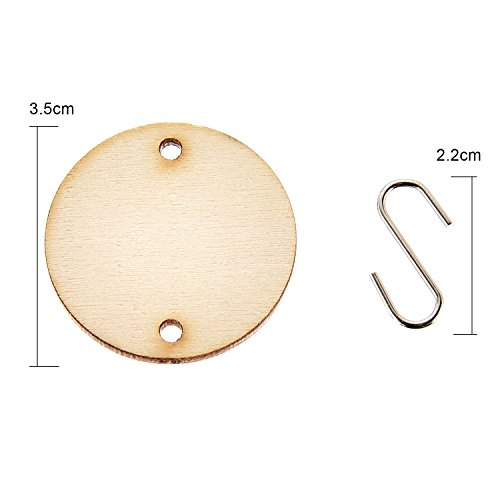 - Material: round discs are made of wood, S hooks connectors are made of stainless steel; Size: round discs diameter is 35 mm/ 1.38 inches and thickness is 3 mm/ 0.12 inch, overall length of S hook is 22 mm/ 0.87 inch