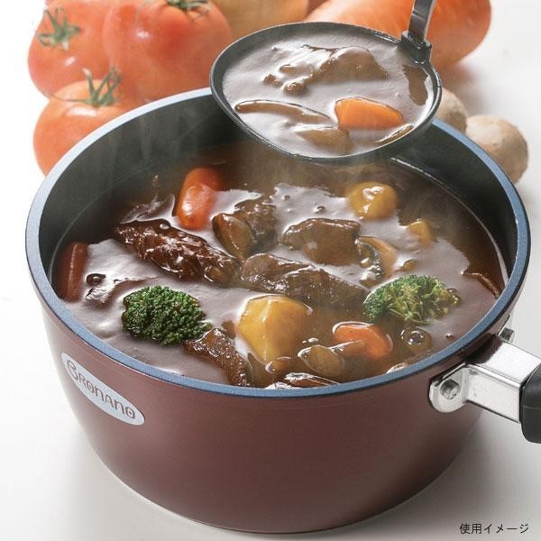 | 仕様 | 容量:約2.1L ガス・IH(200V)対応 食洗機不可 電子レンジ不可 内面:ふっ素樹脂加工(ダイヤモンドコート) 外面:焼付塗装 |