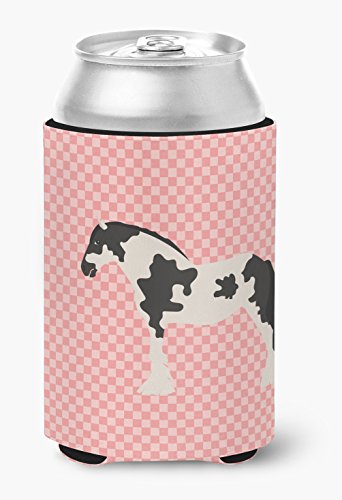 Caroline's Treasures BB7912CC Cyldesdale Horse Pink Check Decorative, Can Hugger, Multicolor