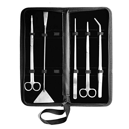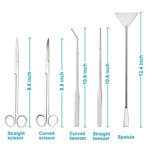 mountain ark Stainless Steel Aquarium Aquatic Plant Tweezers Scissor Spatula Tools Set 5 Tools with Case Fish Starter Kits for Fish Tank Plants