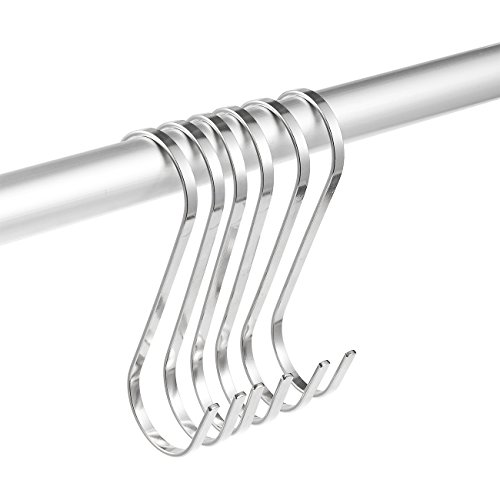 - SET OF 6 STAINLESS STEEL S SHAPED HOOKS: These stainless steel, s-shaped hooks are designed for hanging in your wardrobe, cupboards, dressers or locker, for easier storage of clothing or tools. No need for drills and tools!