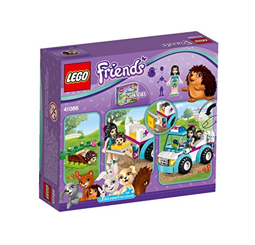 -. Binding : Spielzeug -. Brand : L.E.G.O -. EAN : 5702015375115 -. Feature : Enthält die Spielfigur Emma sowie einen Igel / Ebenfalls enthalten: Tierrettungswagen mit drehenden Rädern, Trage sowie ein Strauch mit Minirutsche. / Zubehör: Nuckelflasche und Haarschleife / Spiel mit dem kleinen Igel auf seiner Rutsche im Strauch. / Eile mit der Mobilen Tierpflege zur Hilfe! -. IsAdultProduct : 0 -. IsAutographed : 0 -. IsMemorabilia : 0 -. Label : L.E.G.O -. LegalDisclaimer : Achtung: Dieser Artikel kann verschluckbare Kleinteile enthalten und ist nicht für Kinder unter 3 Jahren geeignet. -. Manufacturer : L.E.G.O -. Model : 41086 -. MPN : 41086 -. NumberOfDiscs : 1 -. NumberOfItems : 1 -. PackageQuantity : 1 -. PartNumber : 41086 -. ProductGroup : Toy -. ProductTypeName : TOYS_AND_GAMES -. Publisher : L.E.G.O -. ReleaseDate : 2014-12-18 -. Studio : L.E.G.O -. Title : L.E.G.O 41086 - Friends Mobile Tierpflege